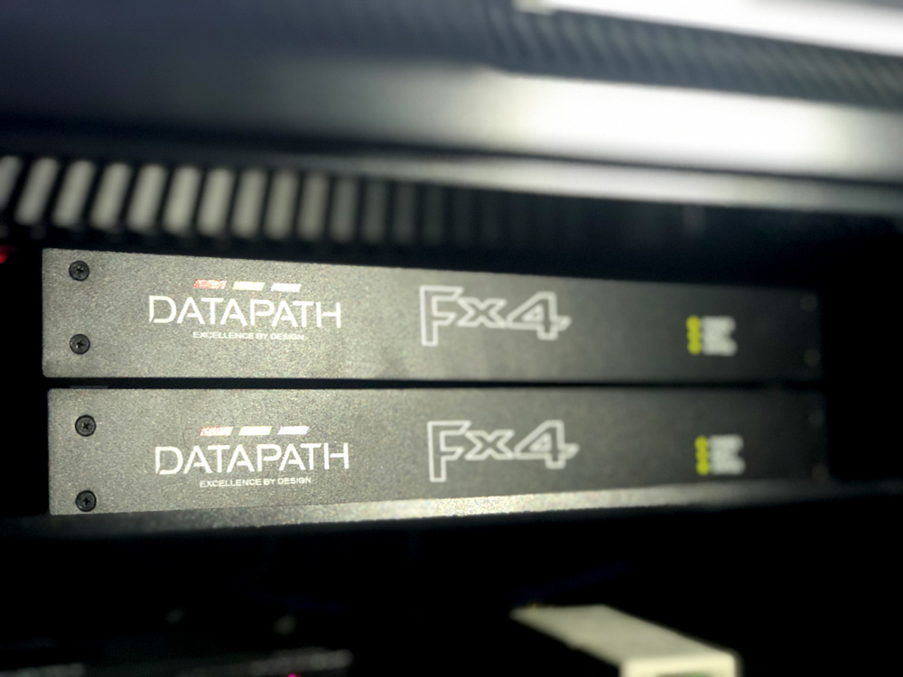 This process was also combined with the projector’s lens shift and zoom functions, allowing for more precise pixel-to-pixel adjustments. After each projector was aligned and configured, we used 2x DataPath Fx4 Next Generation Display Wall Controllers to configure the blend, content distribution and overlap regions. The Datapath Fx4 is a multi-faceted stand alone display controller that supports a choice of inputs, high bandwidth loop-through, as well as 4 genlocked outputs in either DisplayPort or HDMI.
