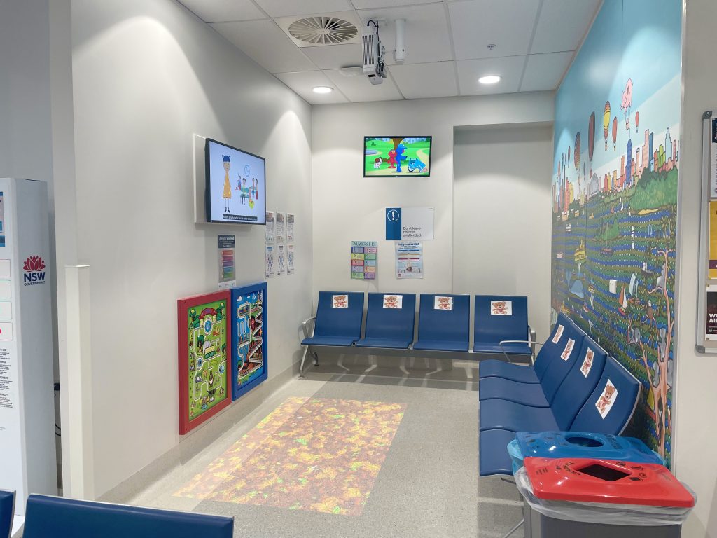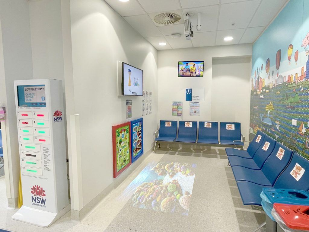 Royal North Shore Hospital’s emergency waiting room had an underperforming interactive system that failed to engage visitors effectively. Seeking a trusted and experienced provider, the hospital turned to Vision One Technologies to deliver an improved and immersive interactive floor projection solution. Our goal was to revitalise the existing setup, ensuring an engaging, interactive and reliable system for patients and visitors.