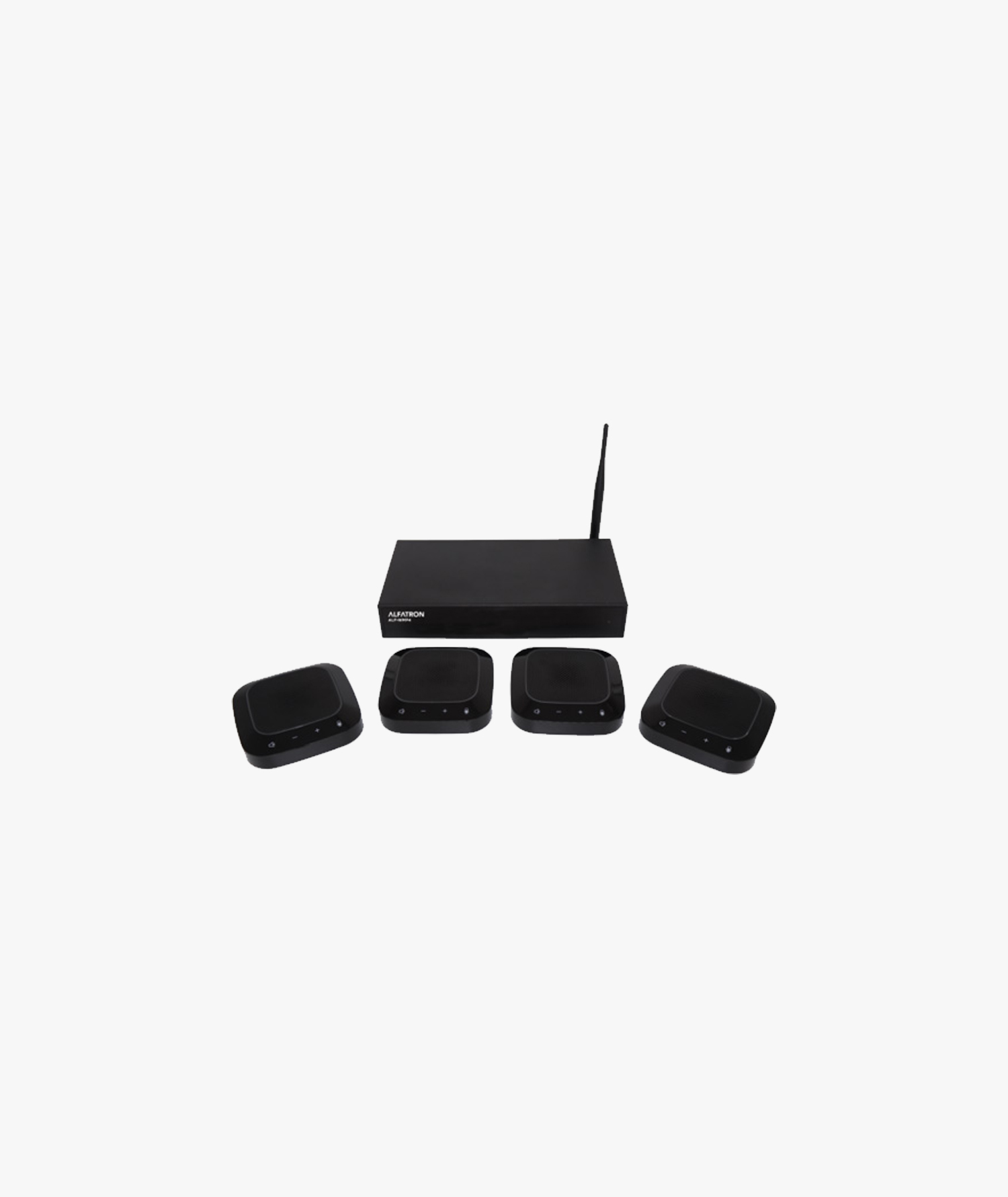 The Alfatron WMP4 Wireless Microphone System is an advanced, high-quality wireless solution designed for clear and reliable audio capture in any professional setting. The ALF-WMP4 system comes with a controller and four 2.4GHz wireless microphones, offering flexibility and excellent coverage for meetings, conferences or events. The controller can be easily connected to an amplifier or powered speakers and it features a USB connection for seamless integration with popular conferencing software like Teams and Zoom.