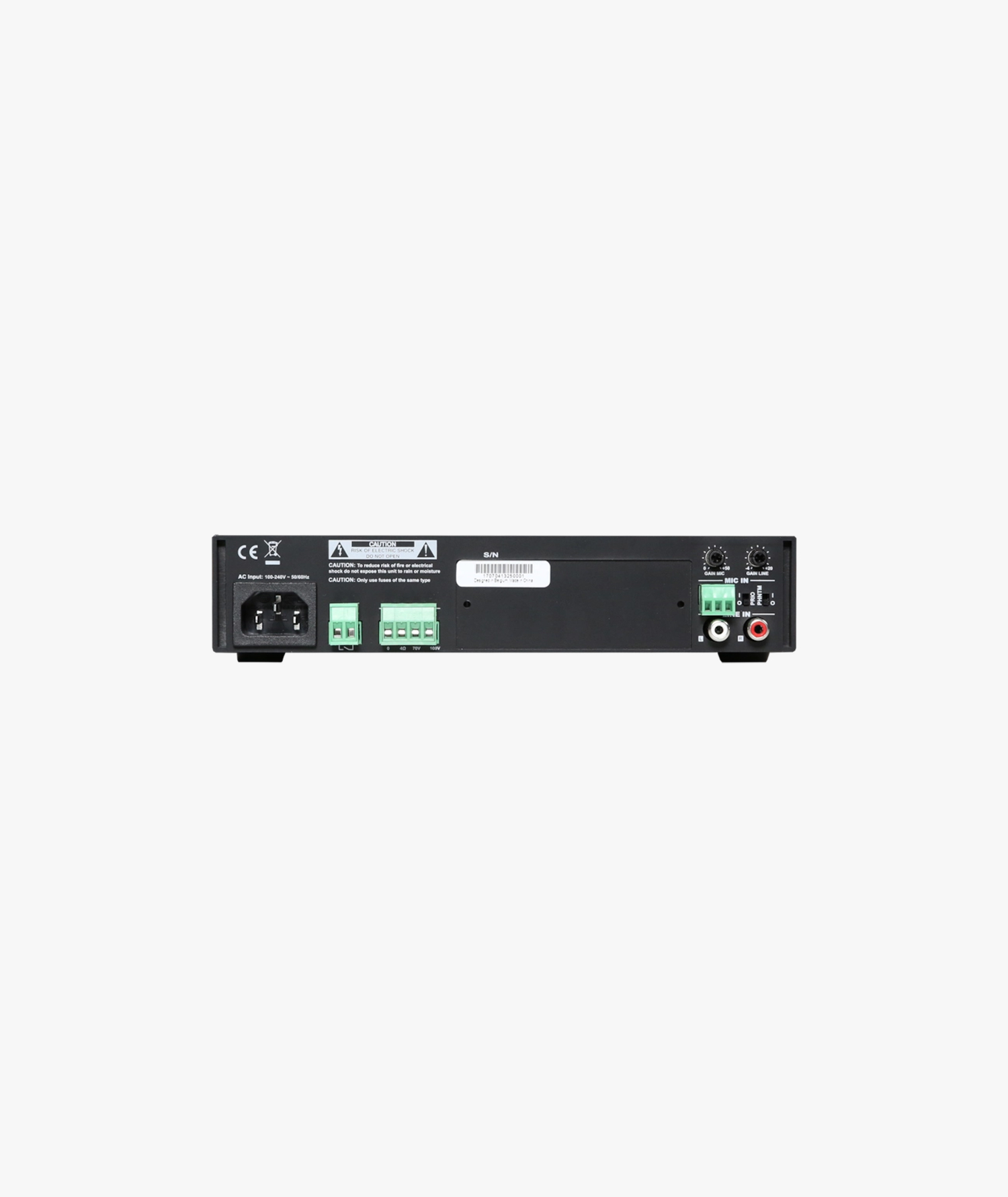 Utilising Class-D amplifier technology, the COM104 delivers 40W of power, supporting both constant voltage (100V and 70V) and low impedance (4 Ohm) audio systems. It features a switch mode power supply, ensuring compatibility with a wide range of mains voltages globally.