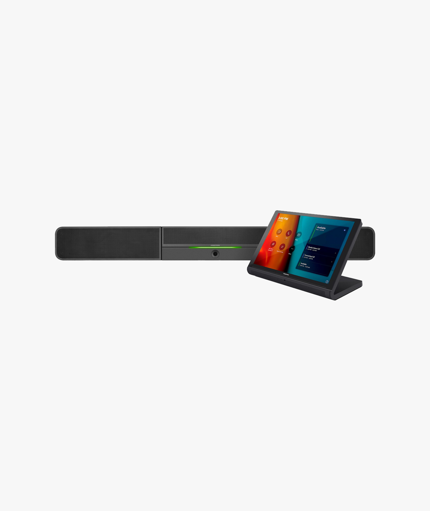 The Crestron Flex UC-B30-T is a compact and powerful video conferencing system designed for small meeting rooms and huddle spaces. Offering seamless integration with Microsoft Teams® Rooms software, the UC-B30-T provides a complete conferencing solution that includes a tabletop touch screen, smart soundbar and camera. It supports single or dual video displays and features high-quality speakers, a microphone with digital signal processing and an HD 1080p camera with an ultra-wide 150° field of view, ensuring exceptional audio and video performance for small meetings.