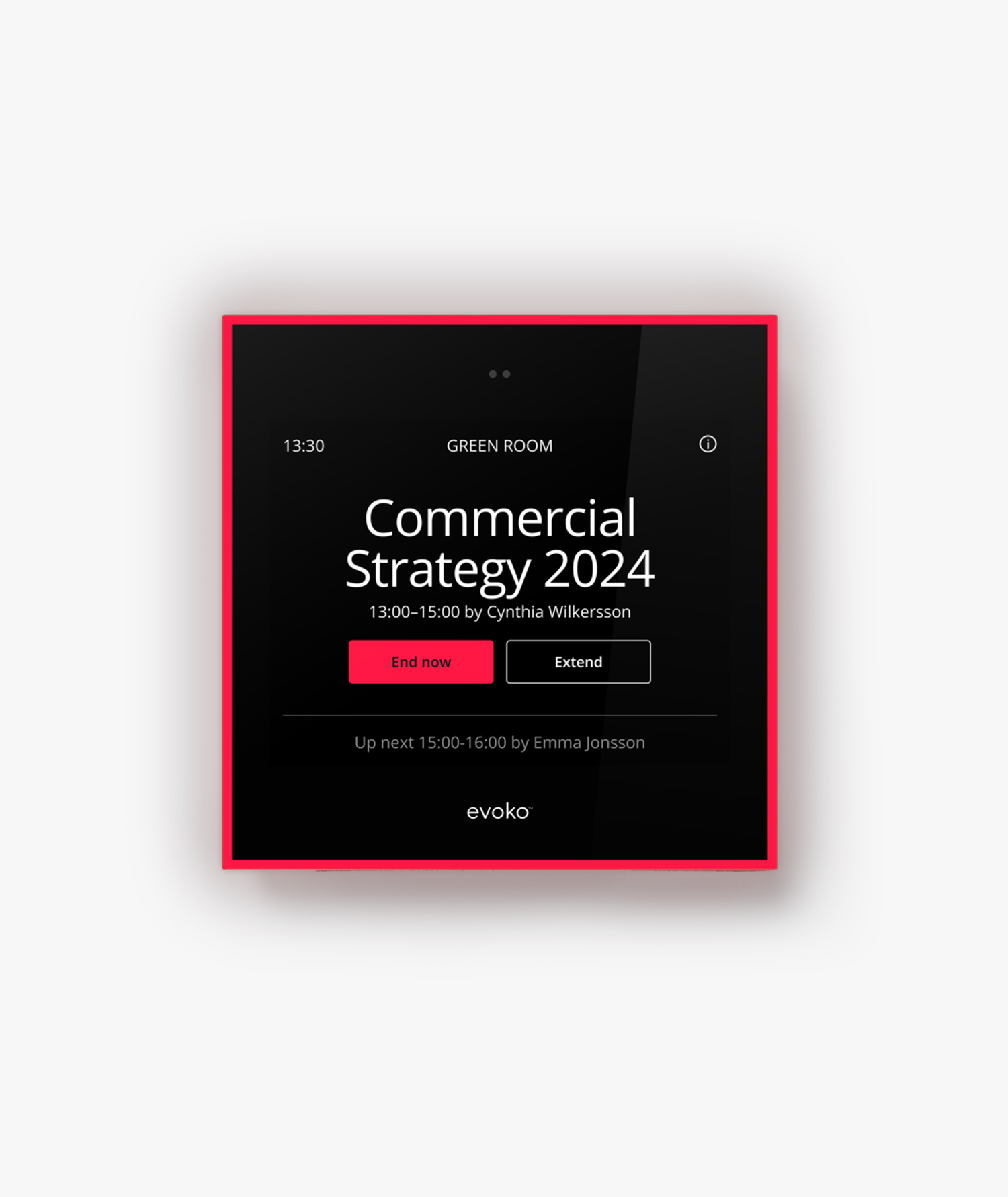 Evoko Naso is a cutting-edge digital room booking system designed to eliminate scheduling conflicts and confusion in modern workplaces. This intuitive solution ensures seamless room management by providing clear, real-time availability updates and room status at a glance. Whether you’re booking a meeting via your calendar or directly on the touch screen, Evoko Naso streamlines the process, making it effortless to find, book and manage meeting spaces.