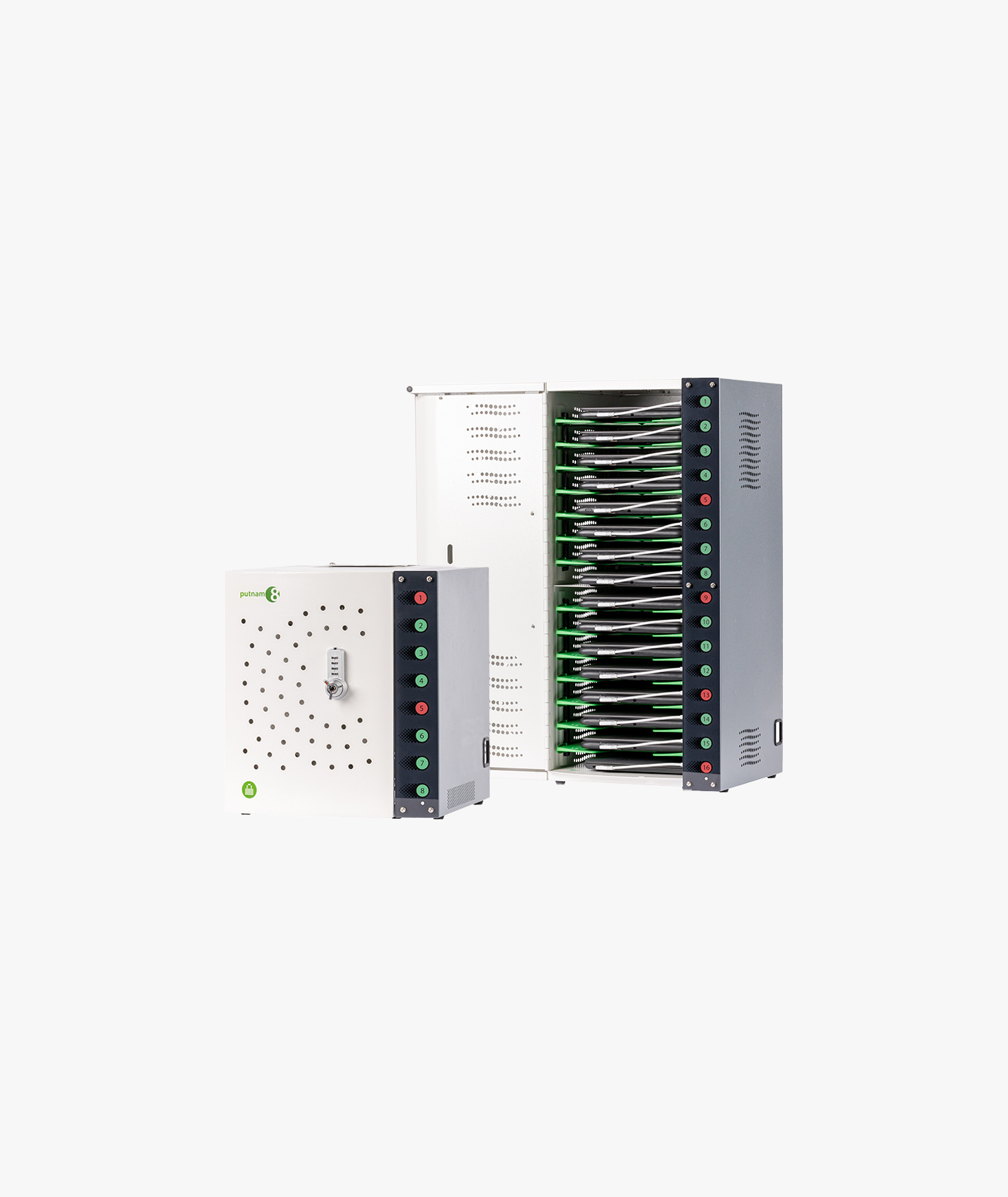 The PC Locs Putnam™ 8 and 16 USB-C PD Charging Stations deliver fast, efficient charging for up to 8 or 16 devices simultaneously. Powered by USB-C PD (Power Delivery) technology, these stations provide higher levels of power for faster charging, perfect for mobile devices, tablets, Chromebooks and iPads.