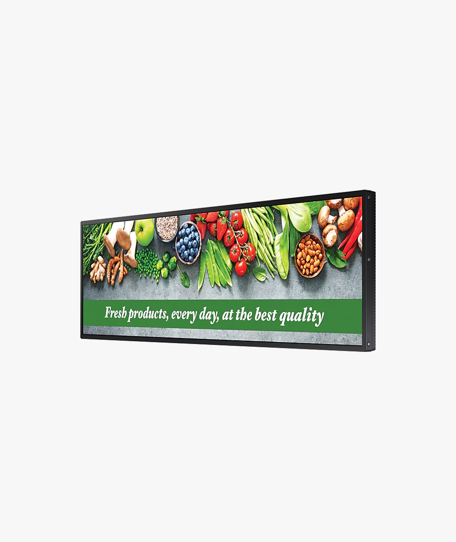 The Samsung SH37C 37″ Stretched Display is the ideal solution for delivering impactful messages in narrow and challenging spaces. With its 16:4.5 wide screen format, the SH37C allows businesses to communicate effectively in areas that would typically be difficult to reach with traditional displays. Whether installed horizontally or vertically, it provides flexibility and adaptability for a wide range of environments.