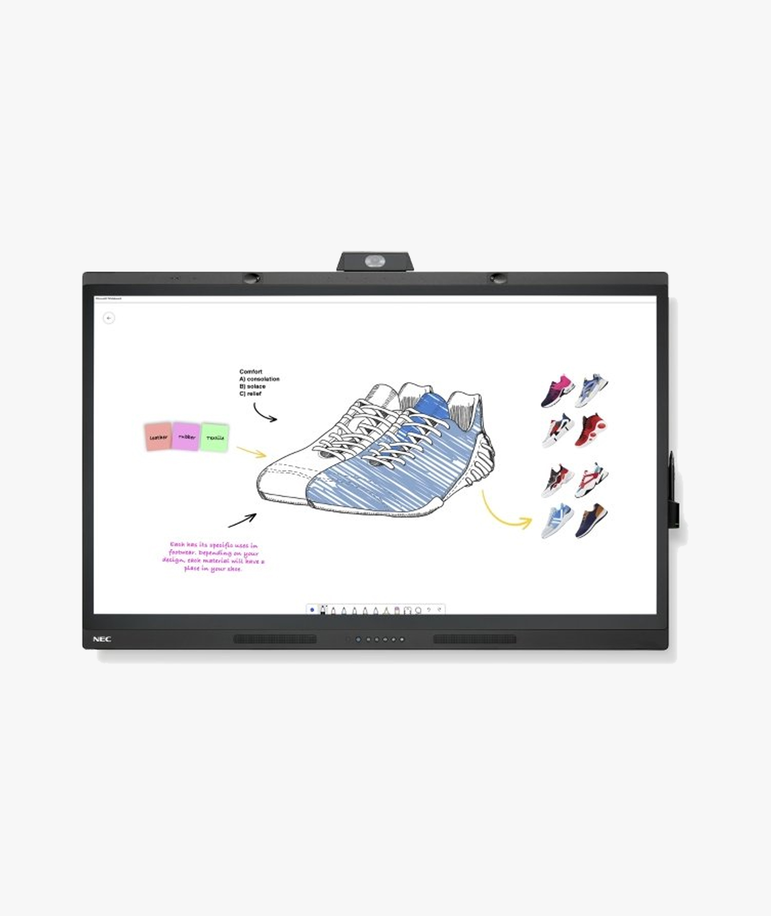- Clutter-Free Design: single-cable connection integrates camera, speakers, microphone, touch and pen functionality.
