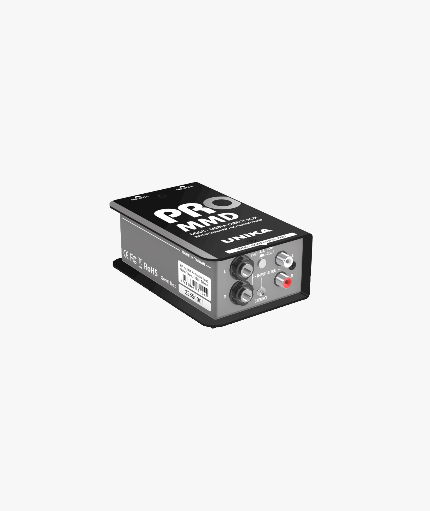 The Unika PRO MMD Passive DI Audio Interface is a high-performance direct box designed for keyboards, electronic drum pads, DJ equipment and multimedia systems. With built-in UNiKA-PRO™ EI9AE3R3 isolation transformers, it delivers a clean, interference-free signal by eliminating radio frequency and ground loop noise.